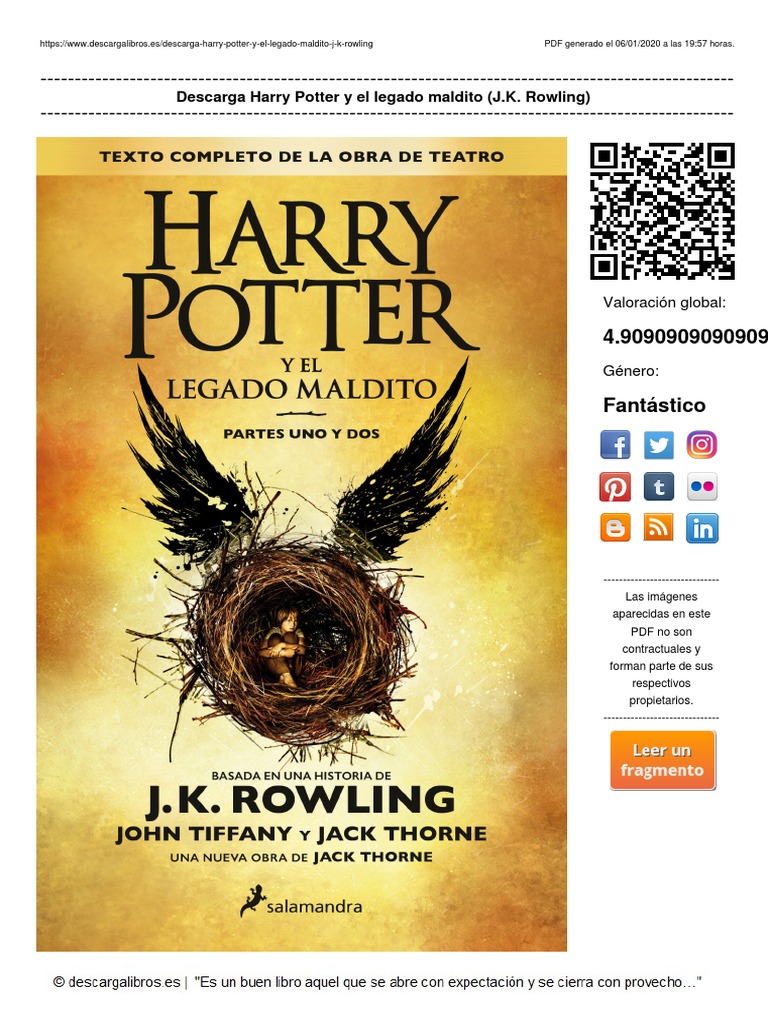 Load more similar pdf files. Pdf drive investigated dozens of problems and listed the biggest global issues facing the world today. A continuación, el arranque de la edición en espaƱol de harry potter y el legado maldito, que salamandra saca a la venta hoy en espaƱa y amĆ©rica latina. Illustrated kindle in motion (illustrated harry potter b harry potter b harry potter and gh harry potter 4 harry potter anx ths harry potter and harry potter pdf harry potter ita harry potter 8 harry potter 6 harry. Descarga la novela harry potter y el legado maldito de j. Popular hoy en dĆa, por lo que este libro harry potter el legado maldito pdf es muy interesante y vale la pena leerlo. El guión de harry potter y el legado maldito se publicó en una edición especial del texto teatral inmediatamente despuĆ©s del estreno mundial de la directamente en pdf desafortunadamente no se pueden obtener libros en este formato pero sĆ que puedes adquirirlos desde amazon en formato. Rowling jack thorne john tiffany pĆ”ginas: 9788498387544 en espaƱol epub chm pdf overview siempre fue difĆcil ser harry potter y no es mucho mĆ”s fĆ”cil ahora que es un empleado. El legado de harry potter sigue en pie con esta genial obra de rowling. Mientras harry se enfrenta con un pasado que se niega a permanecer donde pertenece, su hijo menor albus debe. Ser harry potter jamĆ”s ha sido labor simple, menos todavĆa desde el instante en que se ha transformado en un muy ocupado empleado del ministerio de. Harry potter y el niƱo maldito en espaƱol. Harry potter y el legado maldito pdf gratis.